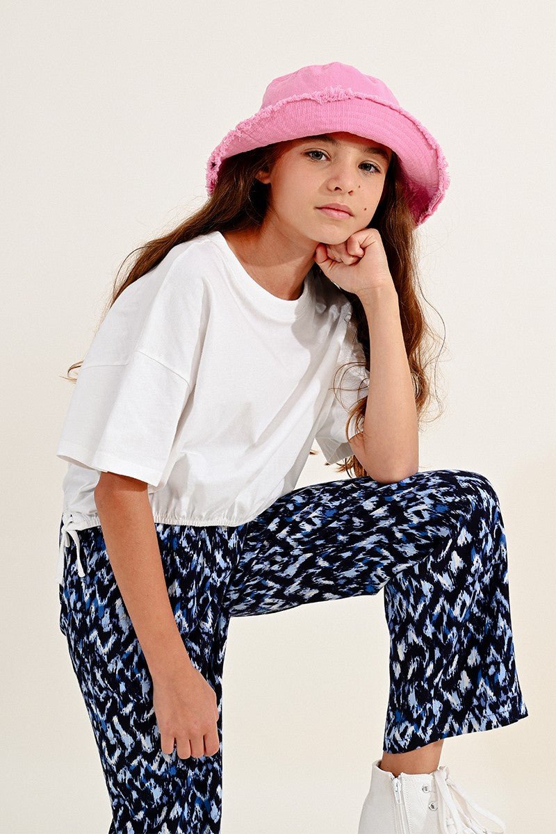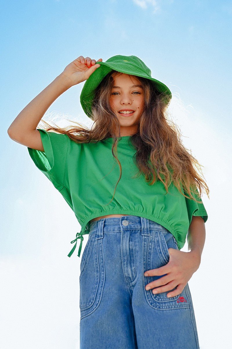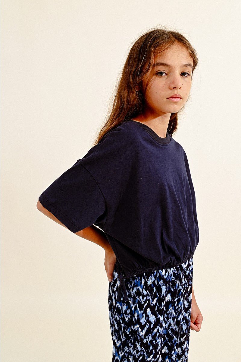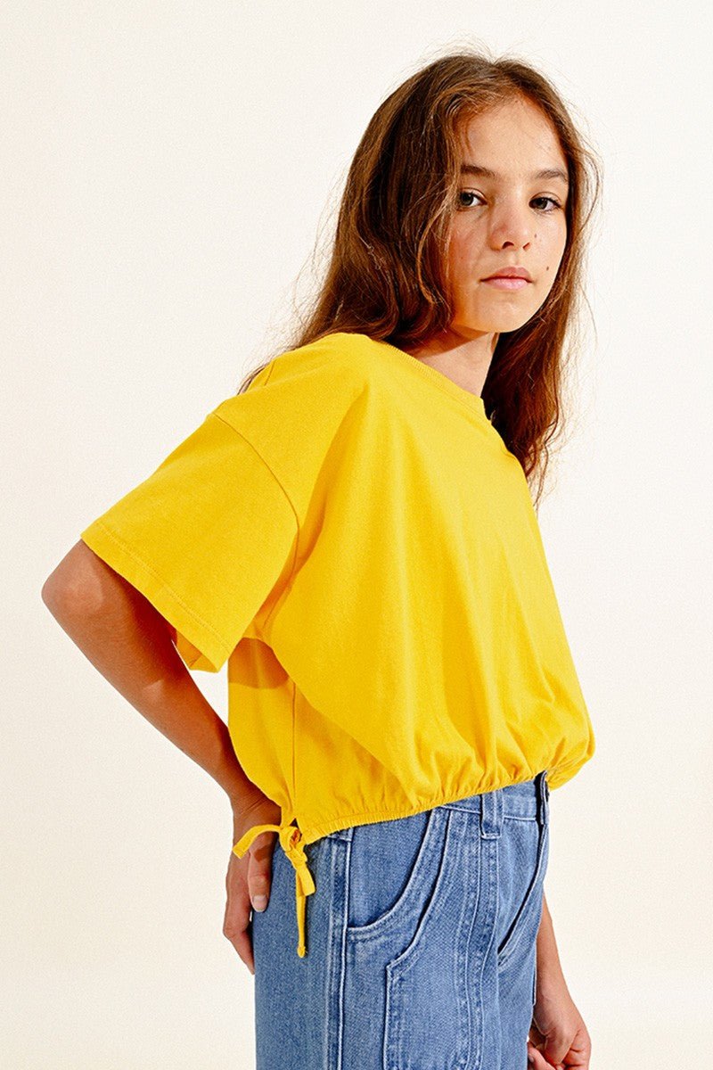 Loose-fitting cotton Tee, drawstring at bottom. Length : 40cm Size 12 ans -2cm<12ans<+1,5cm