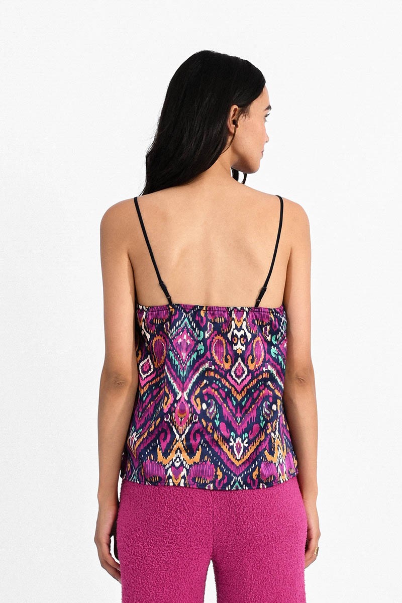 V-neck camisole with thin adjustable straps, indie folk print Length : 48cm Size S